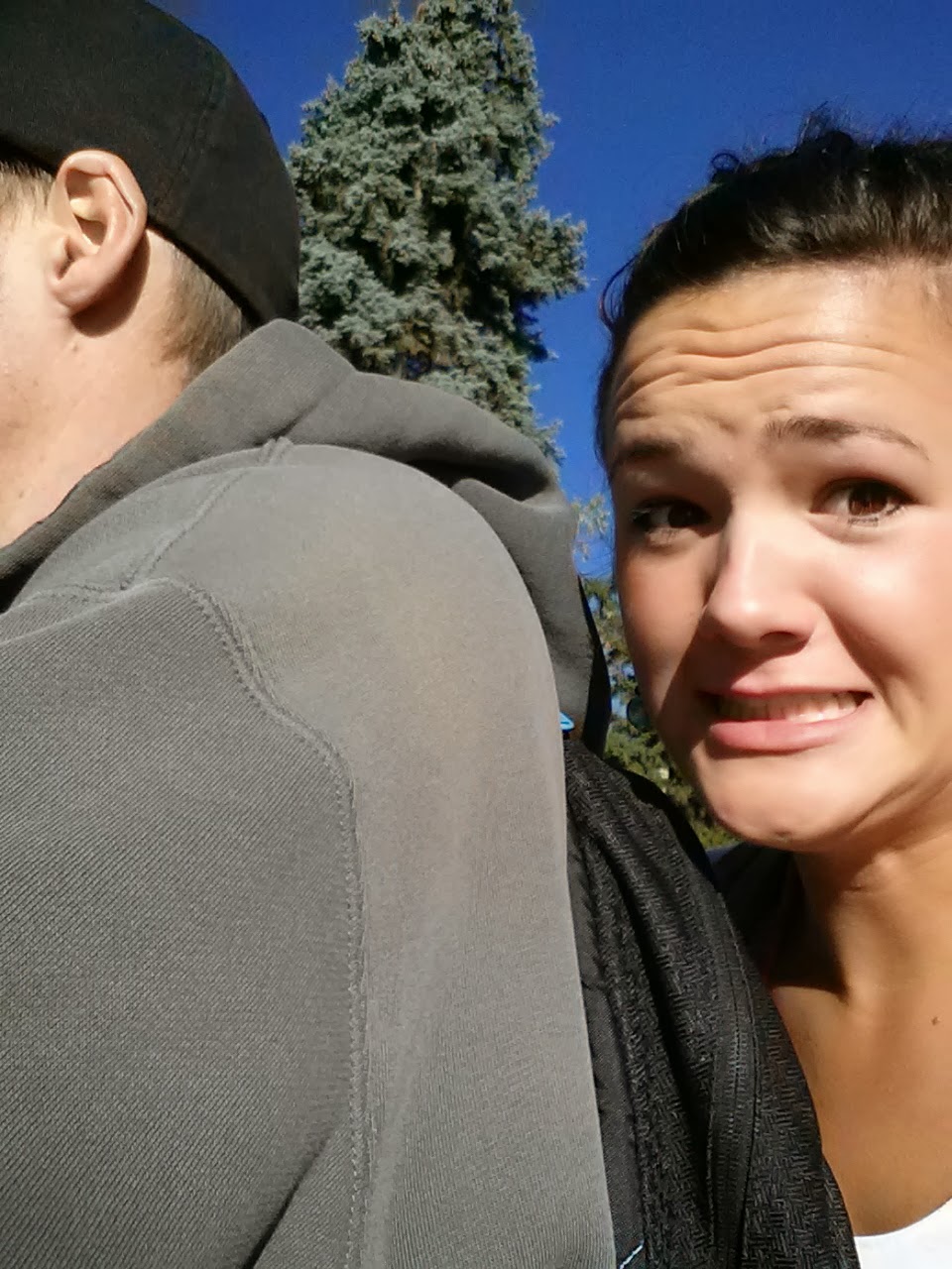This is us going to class one day. We're stopped at a red light on the four wheeler and I'm freezing because its not the warmest outside yet. (that's what happens when your redneck and ride a 4-wheeler to school)